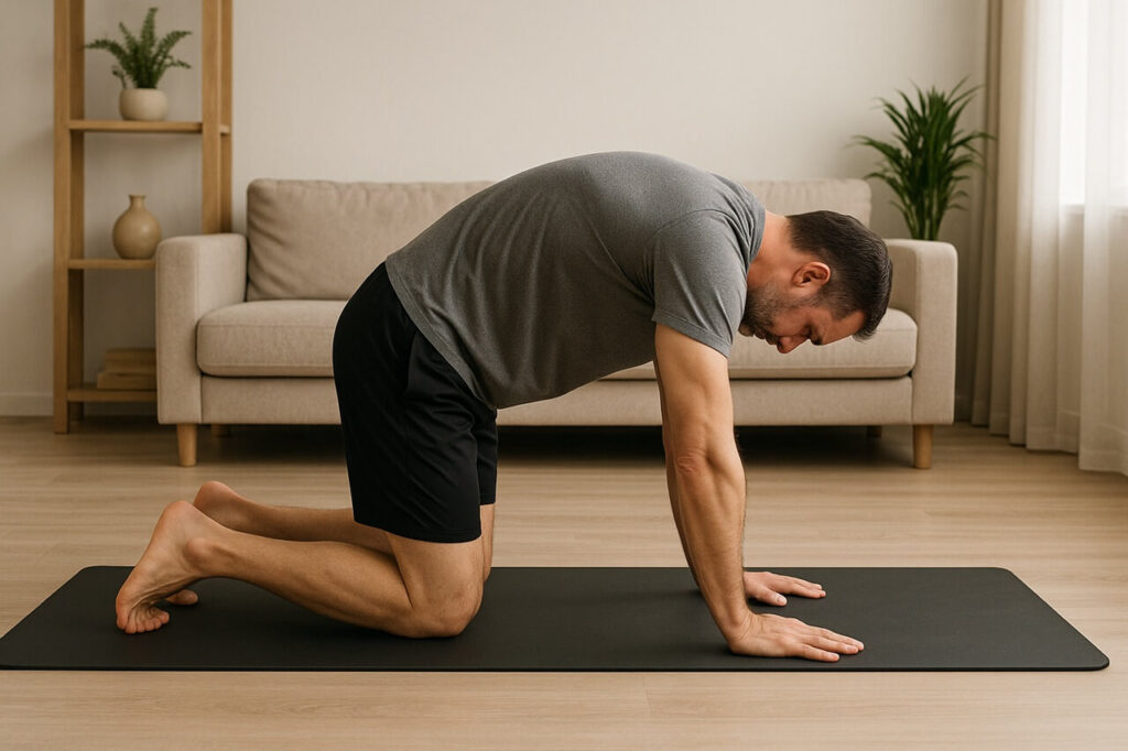 Delikatne rotacje tułowia pomagają zwiększyć ruchomość w odcinku lędźwiowym i rozciągnąć mięśnie wzdłuż kręgosłupa. To ćwiczenie jest szczególnie korzystne po ustąpieniu ostrego bólu, gdy celem jest odzyskanie elastyczności i kontrolowanej mobilności. Skręty wykonywane powoli i bez napięcia nie tylko poprawiają zakres ruchu, ale także wspierają stabilizację postawy.